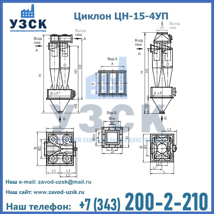 Завод «УЗСК» в Узгене предлагает большой выбор циклонов ЦН-15-900×4УП и прочих устройств, полностью укомплектованных и готовых к эксплуатации. Мы гарантируем соответствие оборудования всем требованиям ГОСТ и ТУ, износостойкость и высокую производительность предлагаемого оборудования. Уральский Завод Стальных Конструкций изготавливает и продает надежное, эффективное и производительное оборудование, имеющее длительную гарантию и большой эксплуатационный ресурс. Если требуется изготовить циклон нестандартных размеров, то такой вариант выполнения заказа тоже предусмотрен, так как предприятие имеет собственные производственные площади и надежных поставщиков. На все поставляемое или производимое оборудование имеются чертежи и прочая техническая документация. Заказать и купить циклоны или прочее оборудование высокого качества и по доступной цене можно через наш сайт или по указанному в разделе «Контакты» телефону.