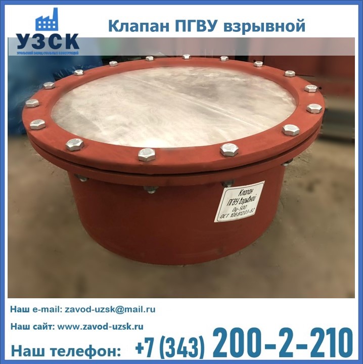 Установка взрывных клапанов в Узгене осуществляется в трактах пылеприготовления котельных систем, работающих под разрежением или при избыточном давлении. Клапаны взрывные ПГВУ (предохранительные клапаны) нужны для того, чтобы предотвратить разрушение энергетических установок в случае взрыва горючих газов, угольной пыли и прочих агрессивных сред.